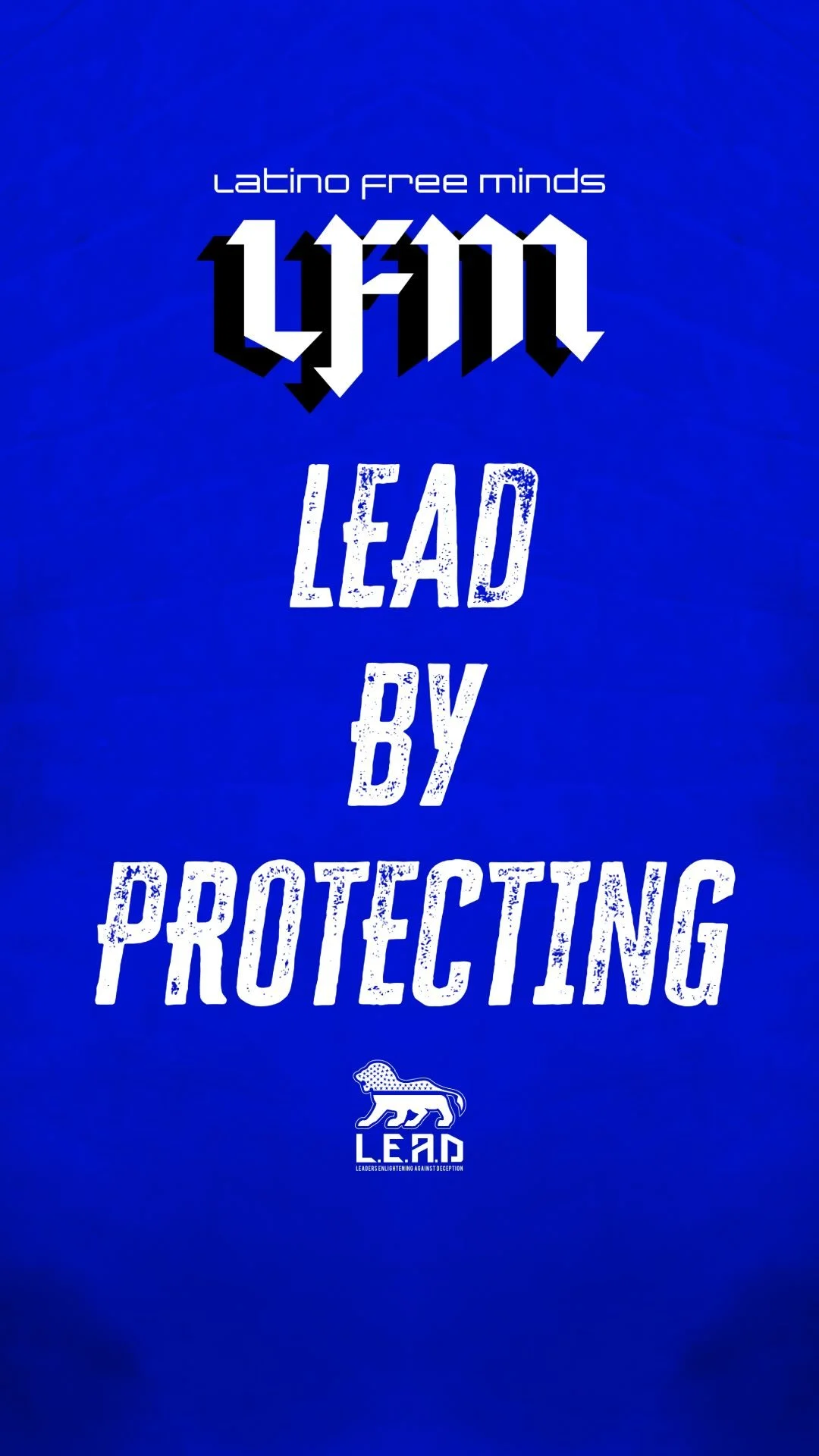 Subtle chest hit: Gothic "LEAD" script above "Protecting against the wicked" in clean serif